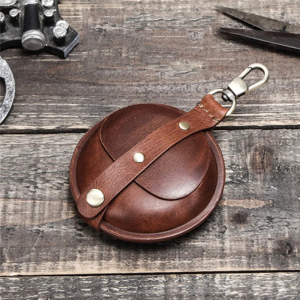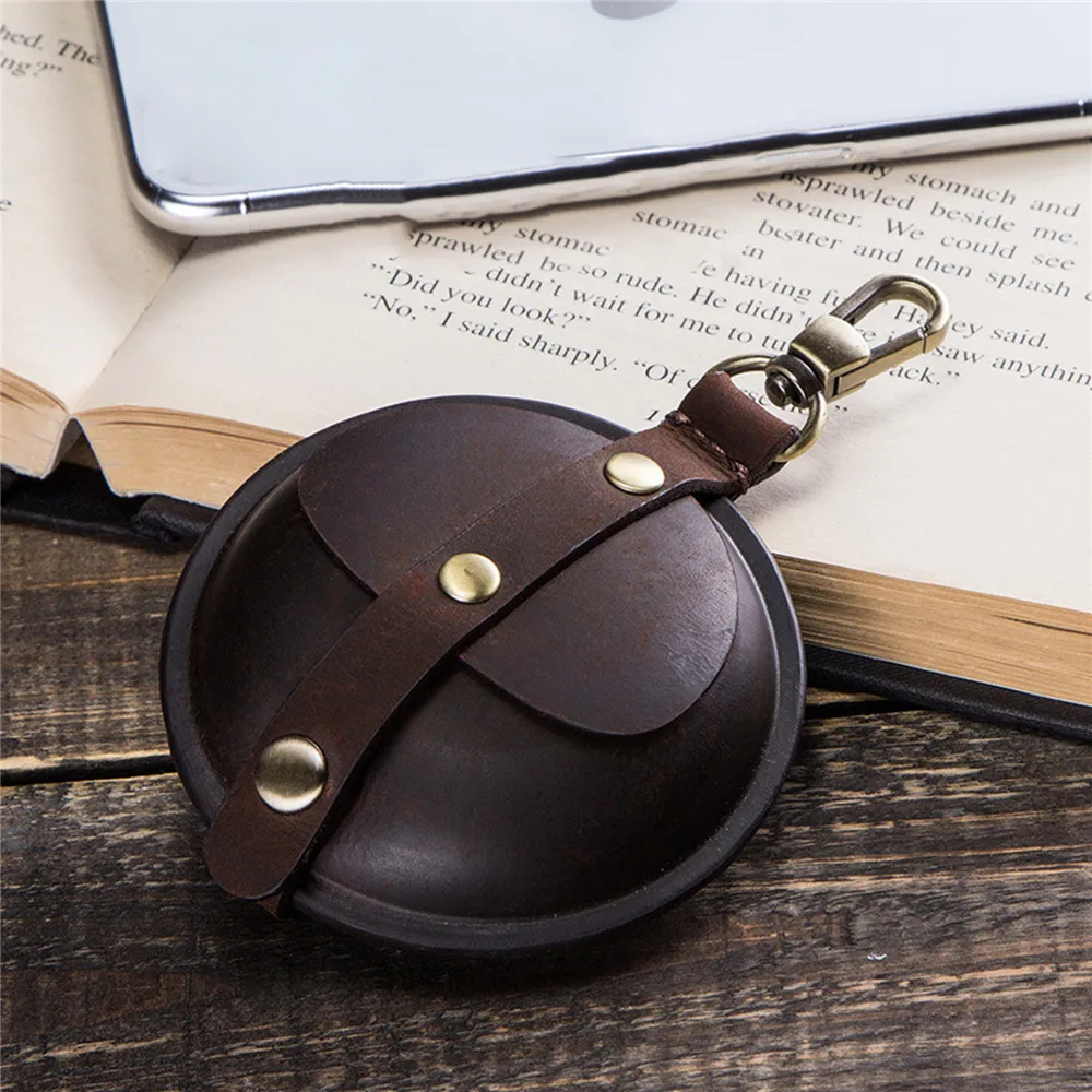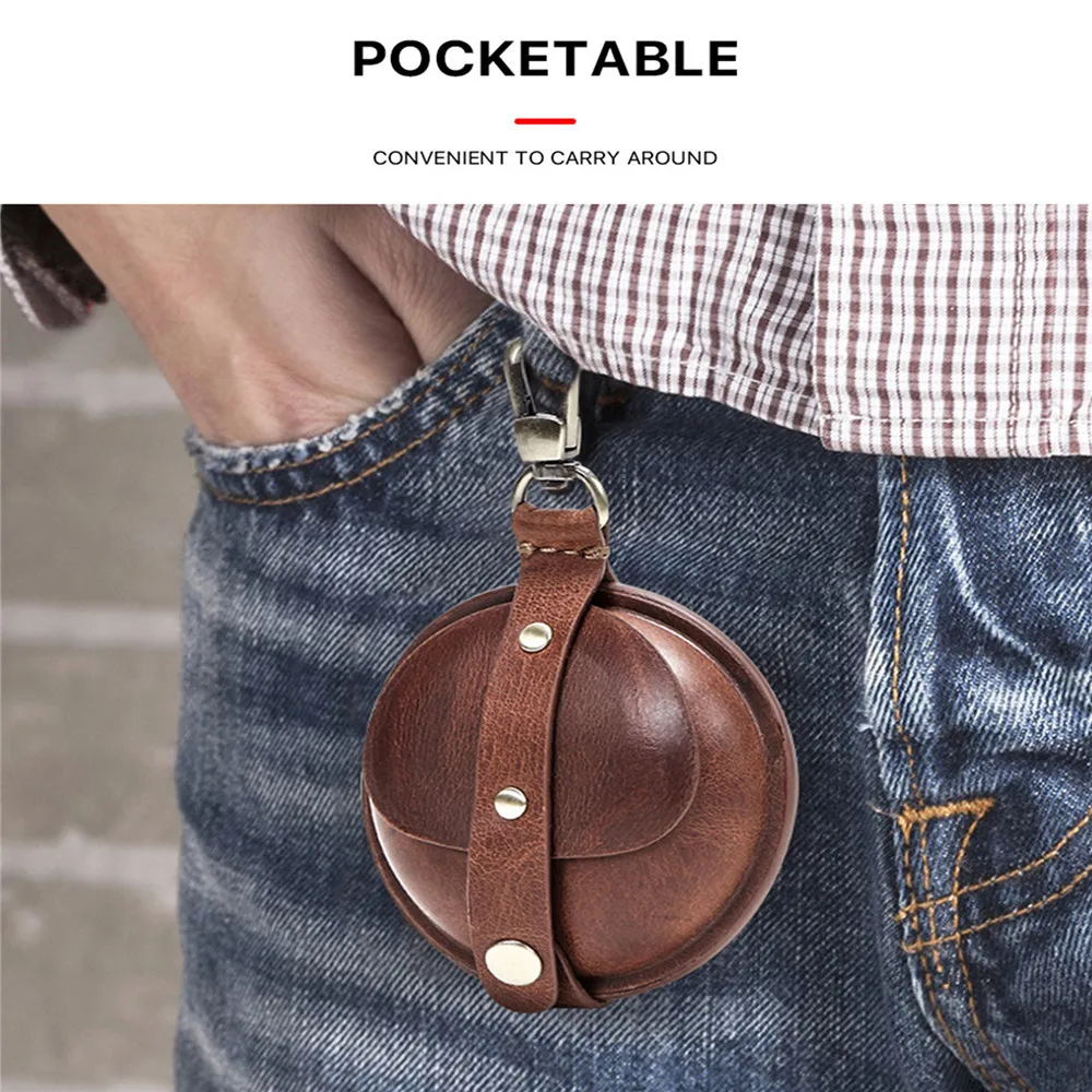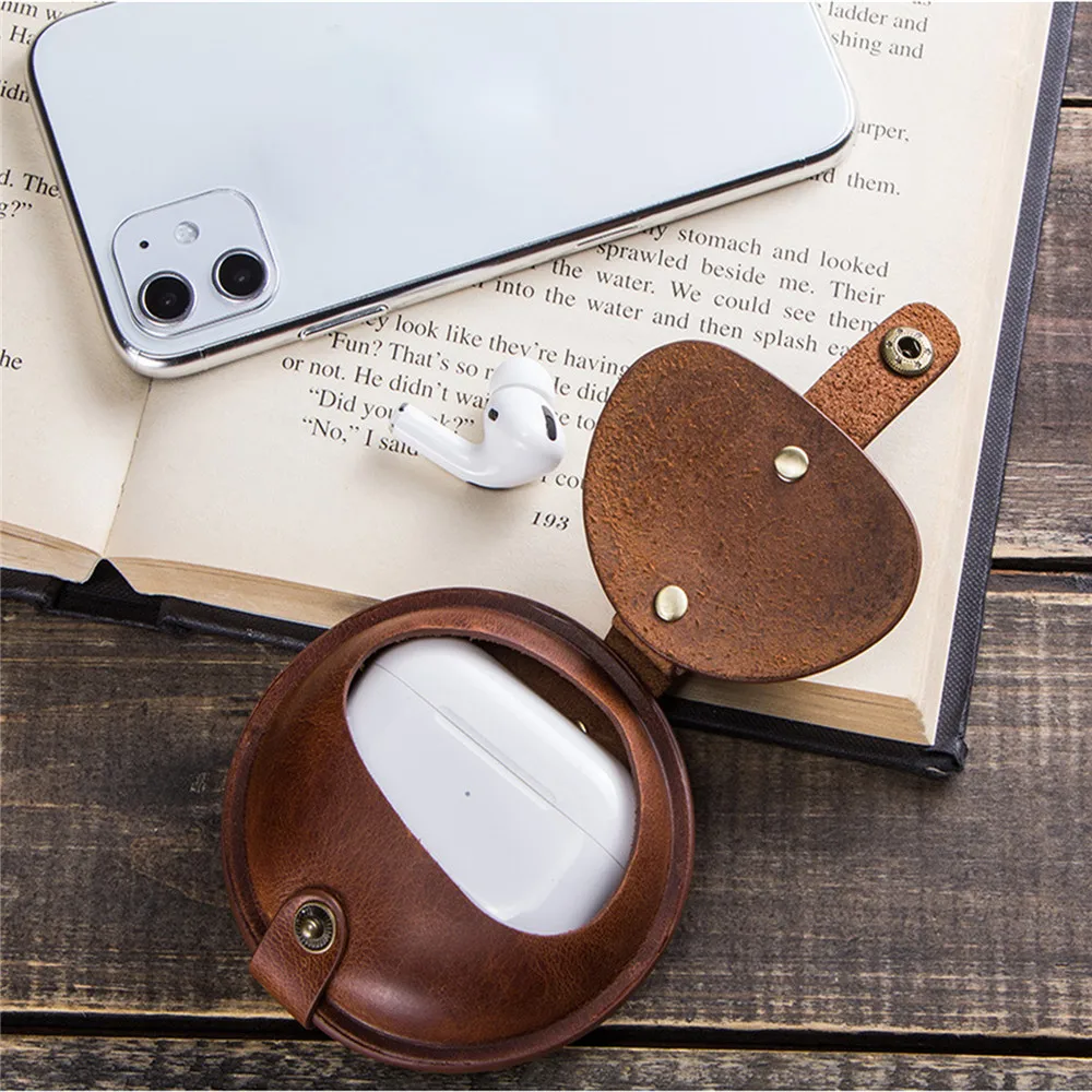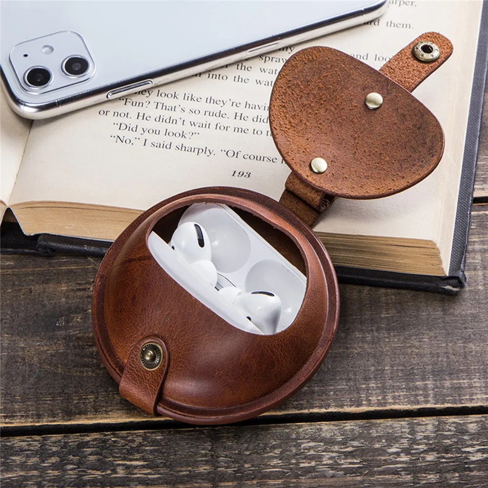 awesome Vintage Portable Leather Protective Case Round Storage Box for Airpods Pro Wireless Earphone Headph